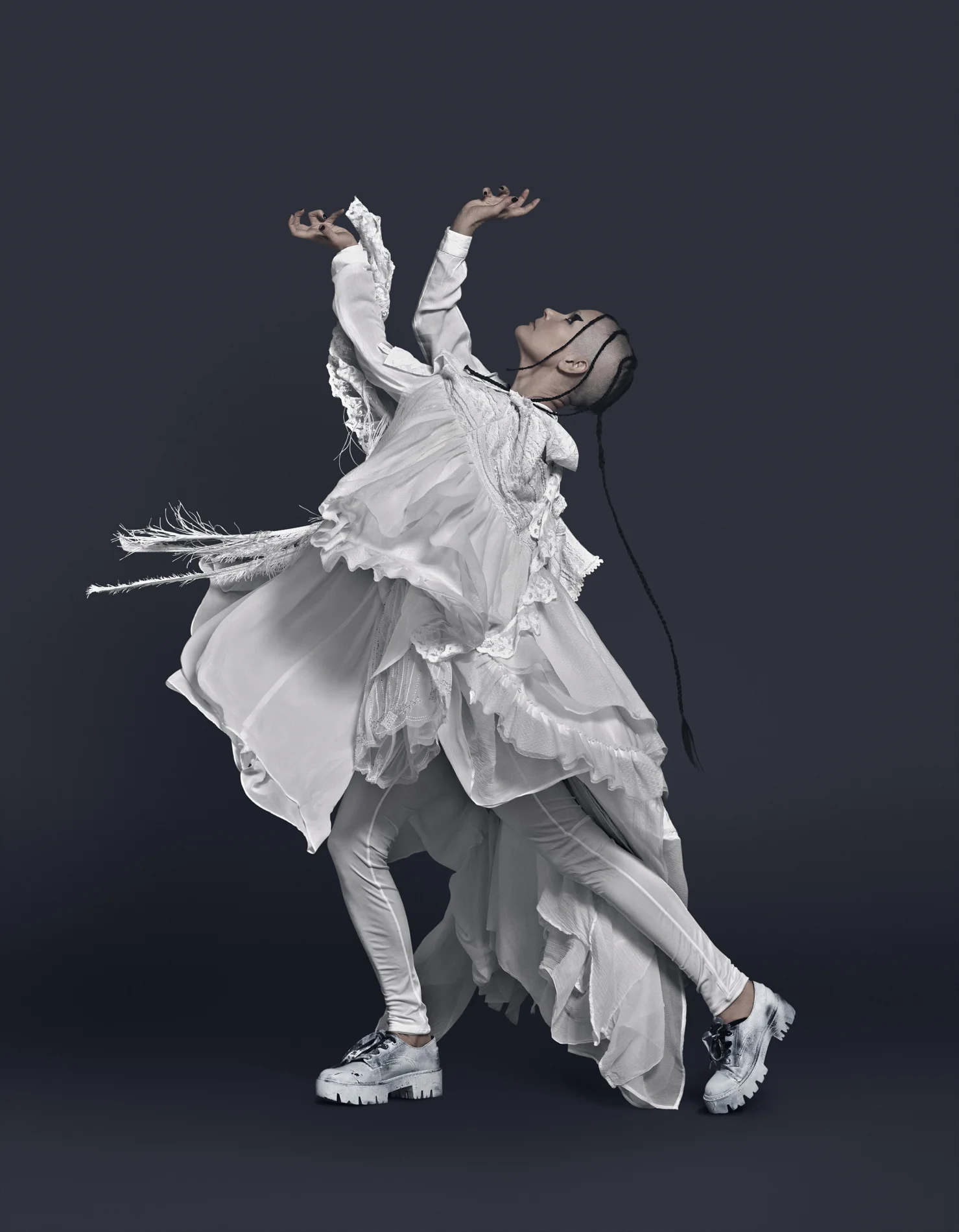 There is a strong sense of process here – from the first sketch to the final silhouette. Reuse plays a central role for several of the designers, who breathe new life into existing textiles through experimental techniques, bold shapes and a deeply artistic drive.